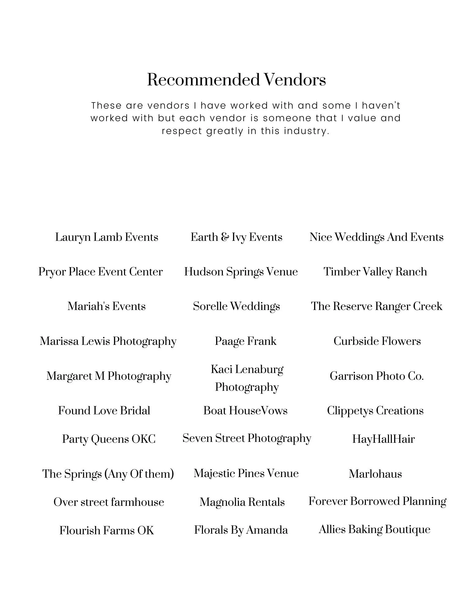 WELCOME TO OUR WEDDING GUIDE! HERE IS INFORMATION FOR ALL PERSPECTIVE CLIENTS!